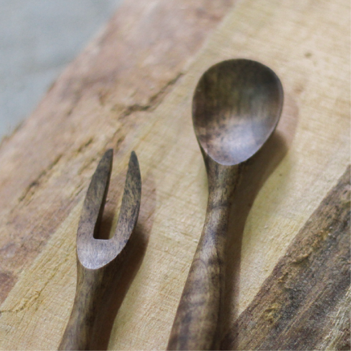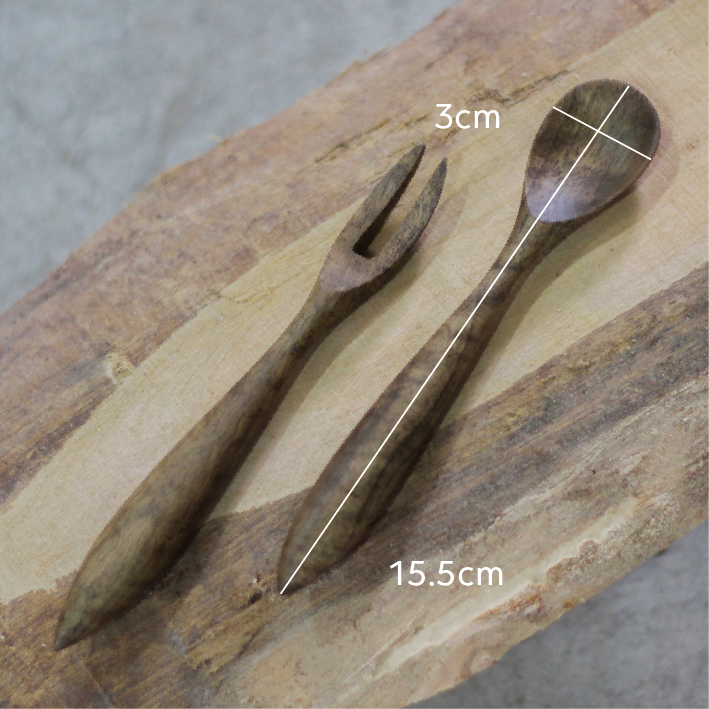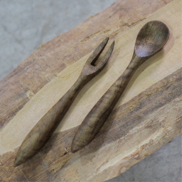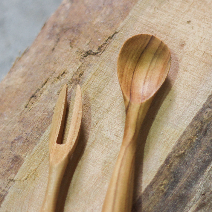 桃と柿の木を使ったフォークとスプーンのカトラリーセットをお届けします。